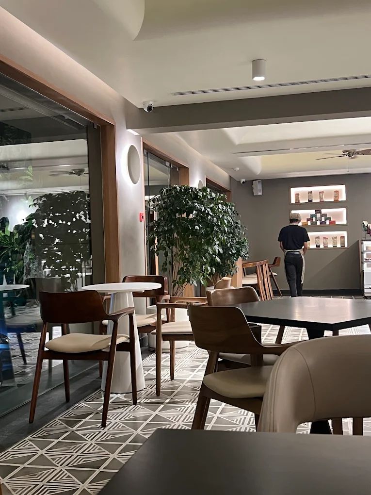 There is an intimate café with wooden chairs that feels warm and inviting. A soft, plush booth and top-of-the-line service make you feel like you're dining high-end.
