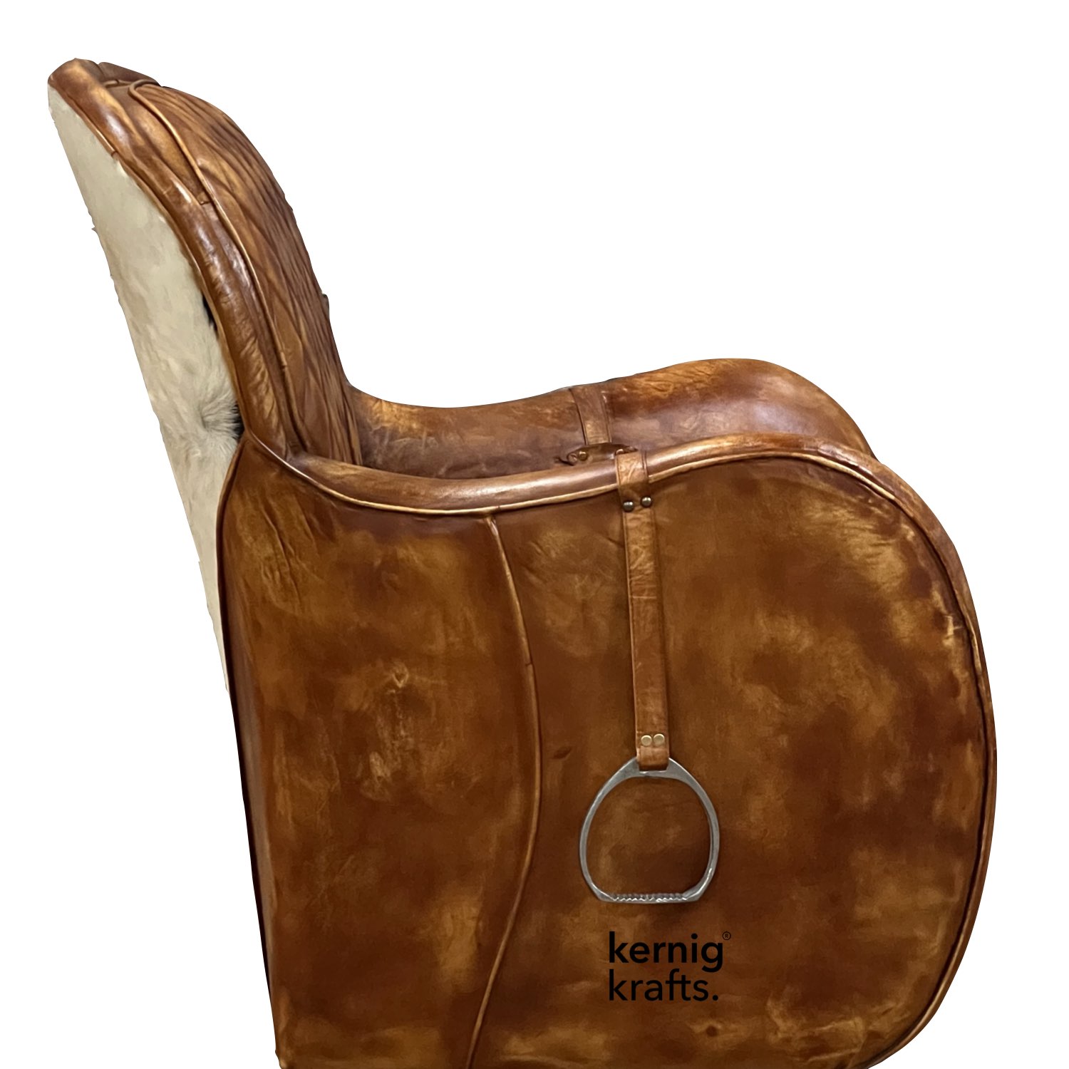 Note: Introducing a one-of-a-kind masterpiece crafted by Kernig Krafts – the Customized Hair-on-Leather Sofa Chair. This bespoke furniture exemplifies the pinnacle of upholstery craftsmanship in Jodhpur, India. Carefully handcrafted with attention to detail, this exquisite piece seamlessly combines the natural beauty of hair-on-leather with a sturdy frame, resulting in a durable and luxurious seating solution. At Kernig Krafts, we specialize in creating top-notch furniture for cafes, restaurants, bistros, and bars, ensuring that each piece is a statement of elegance and quality. Elevate your space with our custom creations and experience the epitome of bespoke furniture in the world of interior design.
