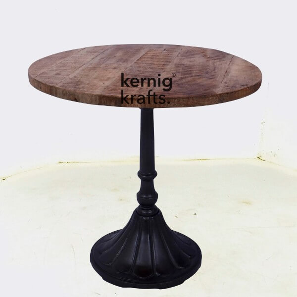 Note : Table color and top customisable. (bespoke) This is a heavy cast iron table, looks super premium and hand carved. This is the type of table you pass it on to a generation as this is rock solid. The table will be powder coated in choice of your color. The wooden top will be in any shape, finish and color; mosaic top will look great, marble and granite are also options. This furniture Piece Works for Coffee shop, bar, micro brewery, cafe, restaurant, bistro, cafeteria, home, office pantry, outdoor, roof top cafe, balcony patio etc.