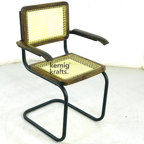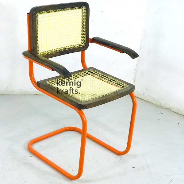 Cantilever Chair, a cult classic chair seen in Indian government offices. The base frame is in metal, the sitting part is synthetic canning on wooden frame. Comes with and without hand rest. Very famous and for those who like retro style. Canning can be in bamboo as well. Wooden part is in rose wood, we may use Oakwood, Steam beech or acacia wood. Color is customisable.