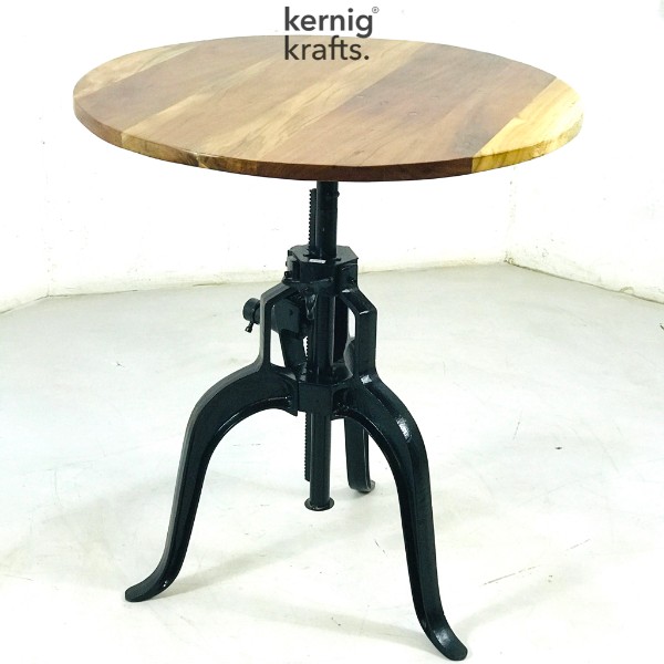 Cast Iron Rod frame base and solid wood top. A roundabout table that lets you savour you food with your closed ones. The conventional cast iron base compliments the round wooden top where there is ample space for people sitting around it. Base powder coat colour and wood stain/colour are always customisable with us.