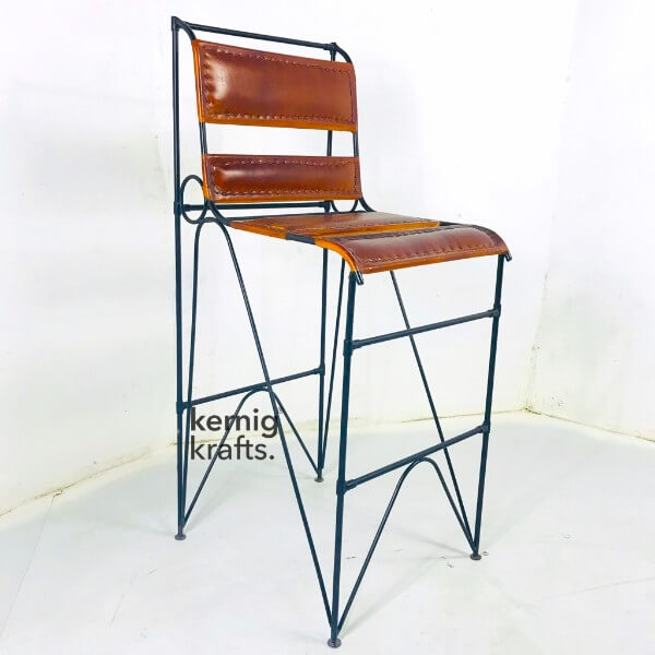 Industrial Bar chair with leather upholstery. Suited for bar, micro brewery, cafe, cafeteria, home bar, patio, balcony, roof top, outdoor.