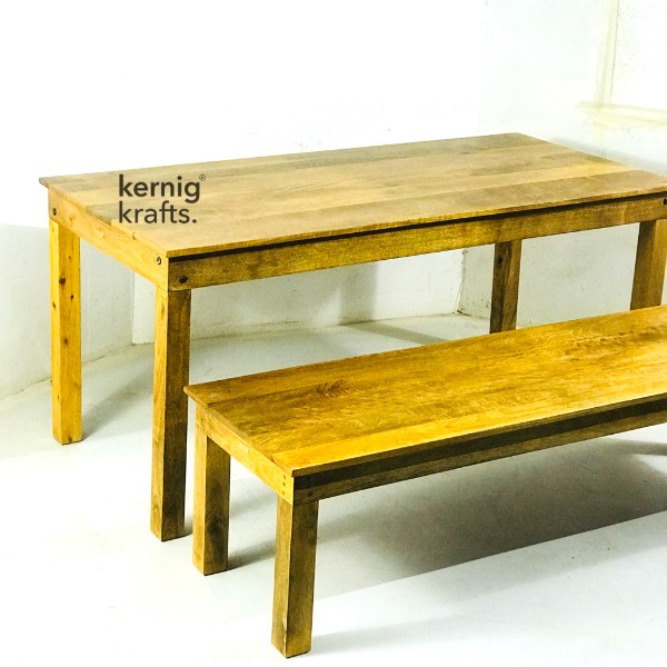 Made in Solid Mango wood haven dark honey stain. This furniture set works for outdoor, Patio, cafeteria, cafe, restaurant, bistro and roof top areas. Traditional legs and complete wooden structure gives it a uniform look of vintage era. Wood stain is always customisable. While using it outdoor make sure you tell us the usage, as the wood selection and finish is done accordingly. Apt for Cafe, Bistro and Restaurant.
