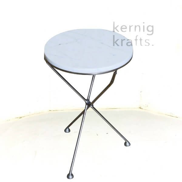 Note : Table top, material, size and color customisable. (bespoke) Base made in mild steel/ iron, top in white marble. Can be used as a End Table and peg Table as well. Very minimal yet elegant design. Total customisable.