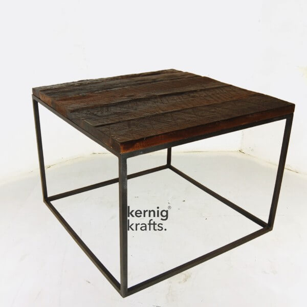 Note : Table top, material, size and color customisable. (bespoke) Sleeper wood top and base is made in mild steel/iron. Powder coated in choice of your color. The wooden top will be in any finish and color. This furniture Piece Works for bar, micro brewery, Coffee shop, cafe, restaurant, bistro, cafeteria, home centre table.