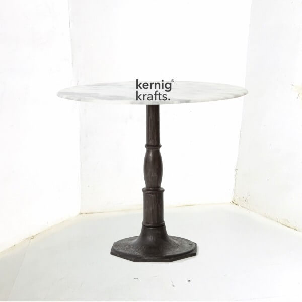 Note : Table color and top customisable. (bespoke) Heavy cast iron table, looks like a piece of art, can be done in wood as well. The table will be powder coated in choice of your color. Mosaic top will look great, marble and granite are also options. The wooden top will be in any shape, finish and color. This table is good for Coffee shop, bar, micro brewery, cafe, restaurant, bistro, cafeteria, home, office pantry, outdoor, roof top cafe, balcony patio etc.