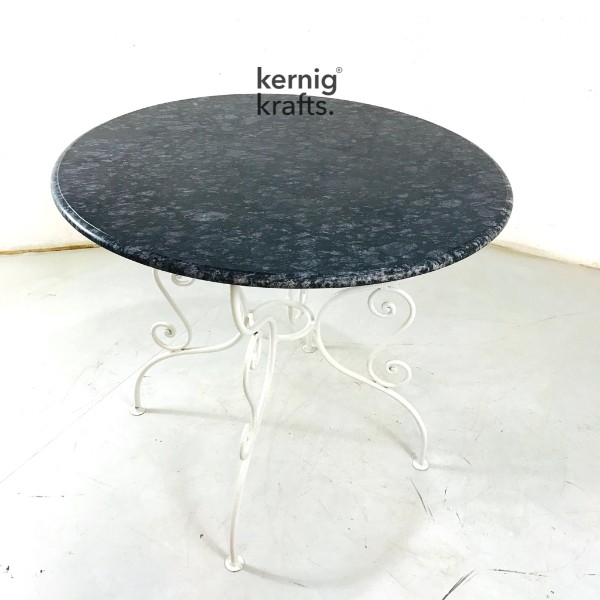 Patio table with Marble top. It is a fusion of industrial and ultra modern furniture. Cast Iron base with Marble ornamentation gives it a luxurious and rich presence. One of our Bespoke furniture work. Metal base colour is customisable and we have many options available for marble also. Delicate yet shipping friendly product. Suitable for exclusive Cafe, Bistro, Restaurant.