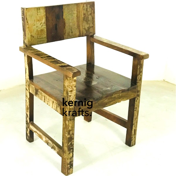 Reclaimed Hand Rest Upholstered Rosewood Chair. There can be a cushion seat. Can be used in outdoor after a special treatment is done on the chair.