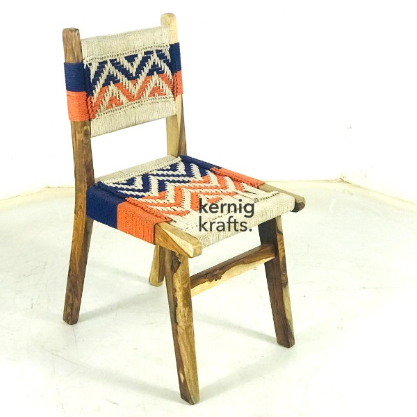 Note : Chair Size, Rattan Color, upholstery and color customisable. (bespoke) This chair is a classic Indian Chair. Made with Rosewood and ropework, everything is customisable. This furniture Piece Works for Garden, outdoor, balcony, cafe, bistro, dhaba etc.restaurant.