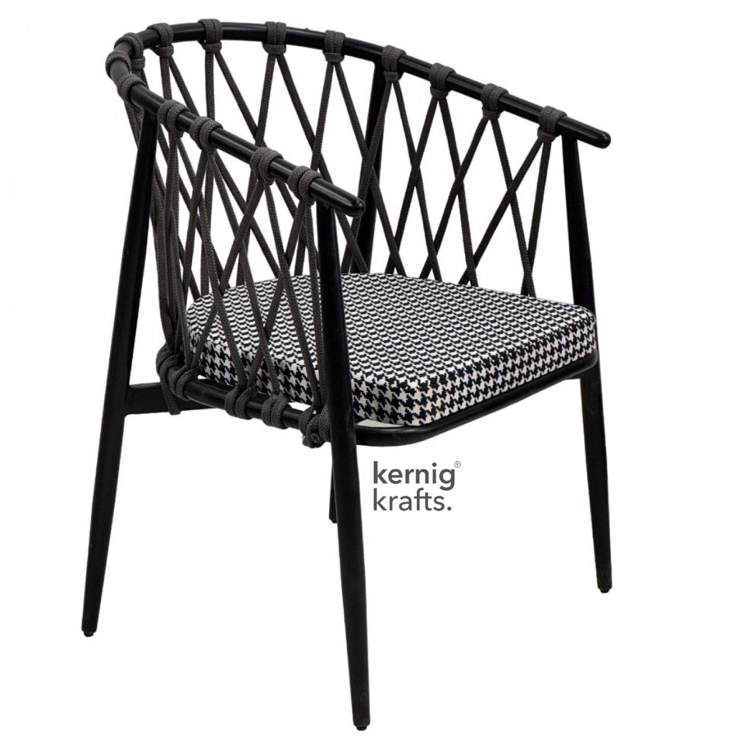 Our metal chairs boast precision powder coating for long-lasting elegance, ensuring they withstand the test of time in any environment. The intricate rope work detailing adds a touch of rustic charm, while the upholstery options provide unmatched comfort.