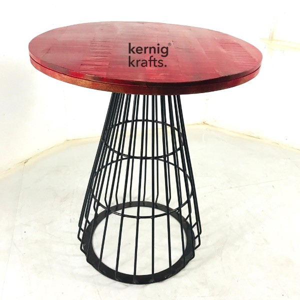 Cast Iron Rod frame base and thick solid wood top. A roundabout table that lets you savour you drinks with your closed ones. The cylindrical base compliments the round wooden top where there is ample space for people sitting around it. Base powder coat colour and wood stain/colour are always customisable with us.