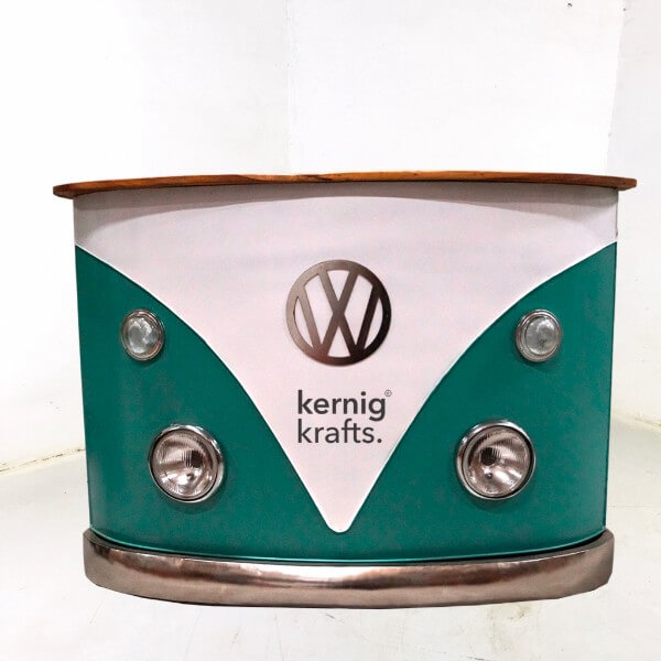 Volkswagen truck counter, or Volkswagen bus counter is a new design that is taking over the country. All the lights are operational and this has a bar setup at the back. Can be used as store front, billing counter, catering counter, booking counter, reception desk, bar counter etc or at a theme based place.